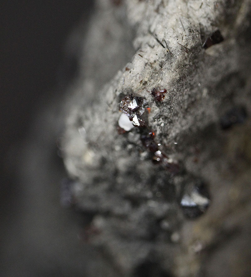 The reddish metallic tetragonal crystals is rutile. It is more often found as inclusions in quartz crystal but here it grows from inside out as separate shapes.